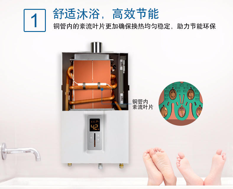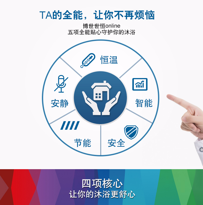 智能恒溫控制系統,根據冬夏季節對水溫的不同要求,來調節水量,在最經濟、環保的能耗下,讓您舒適沐浴。